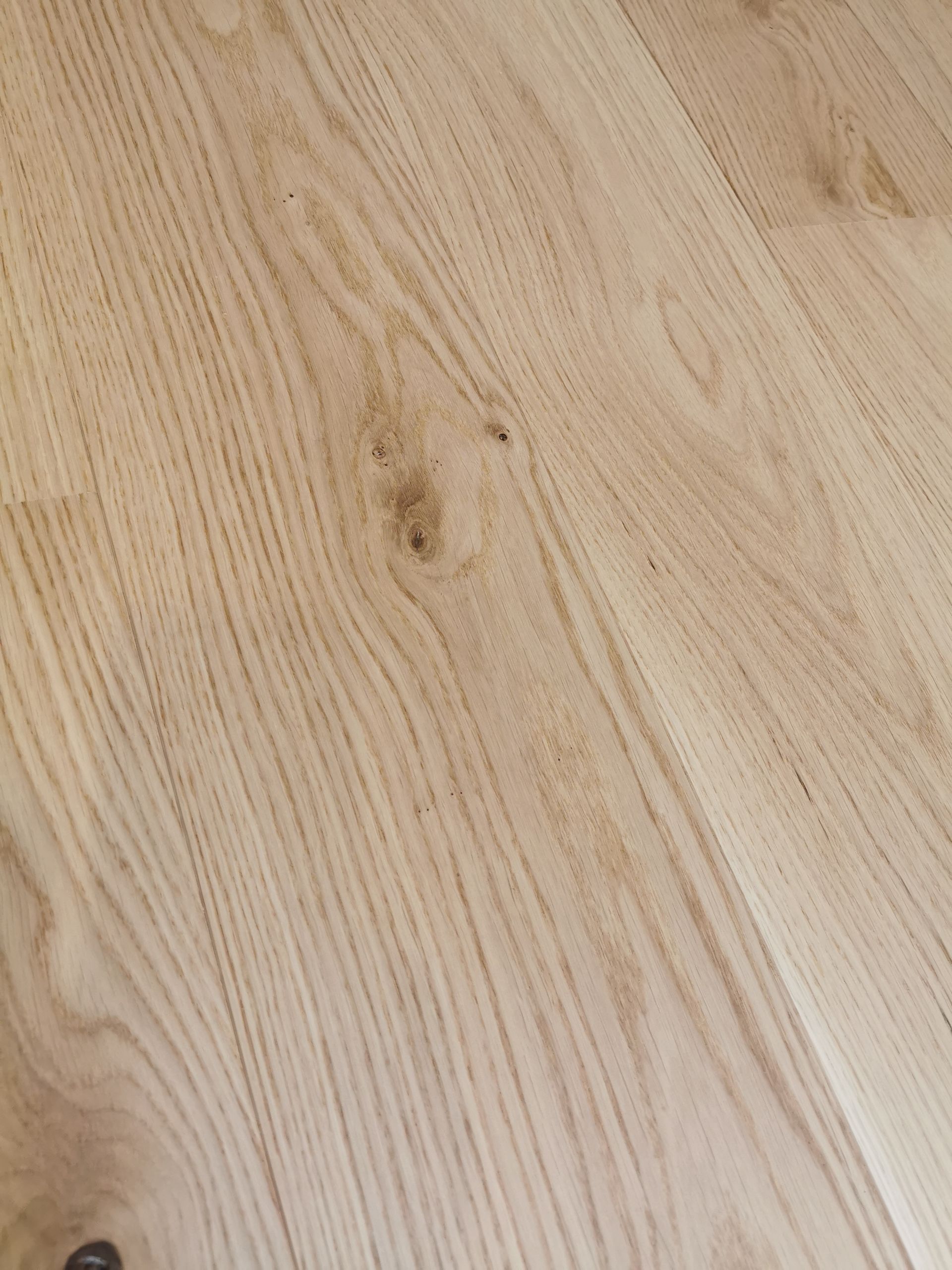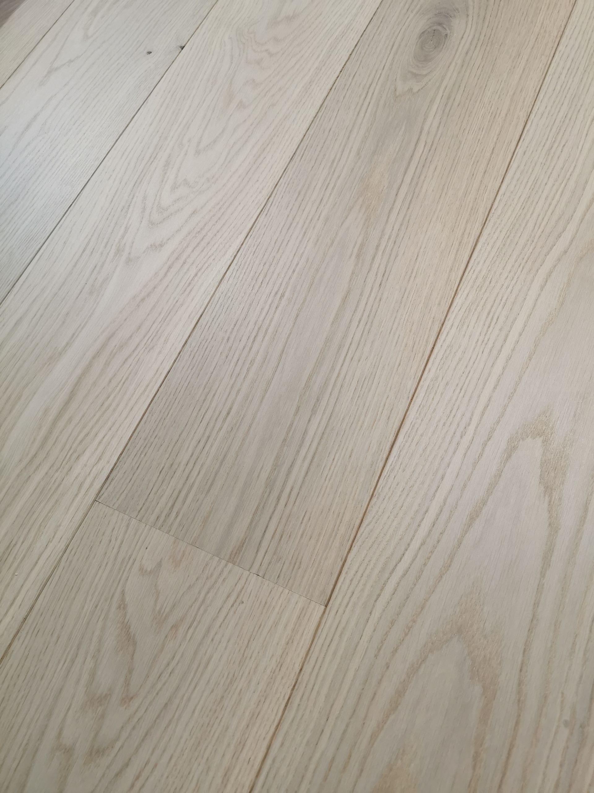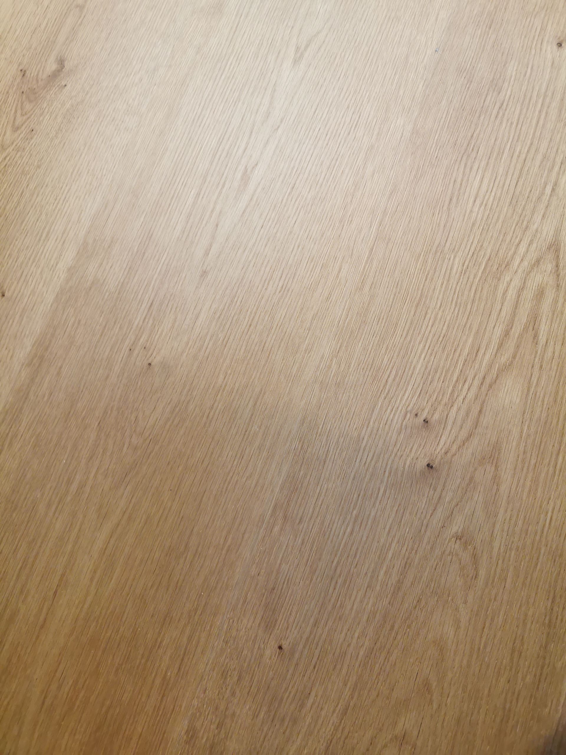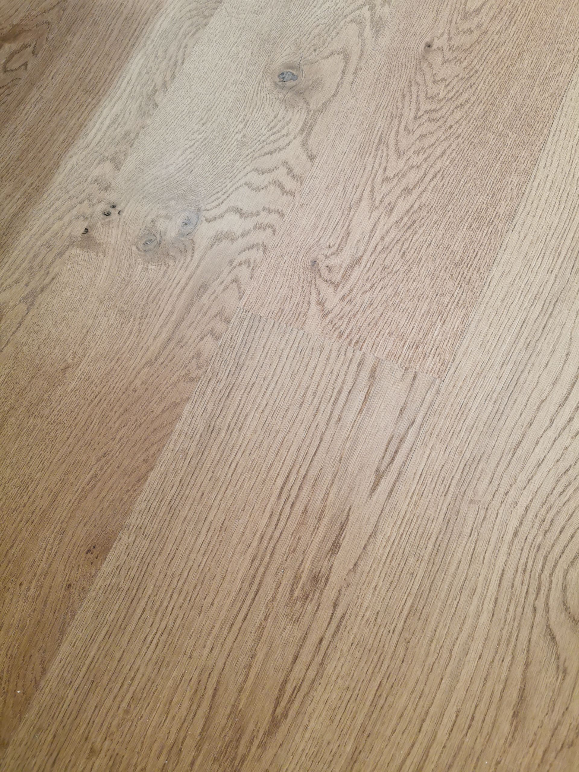 Chêne Français, travaillé en Araba: 4mm de chêne (couche d'usure) collé sur 2 couche de pin. Un parquet de 14mm haut de gamme 100% bois, à coller ou à poser en flottant.